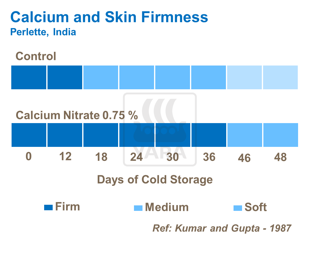 Calcium is a constituent of the cell wall and middle lamella of plant cell, thus the direct relation between calcium ions and cell wall partially explains resistance to invasion of pathogens. It plays a critical role in lignification and wood maturity, which gives the wine grape a greater tolerance to frost. Calcium is also very important in providing an elasticity of cell walls, reducing the impact of disease and minimizing end of season cracking and splitting.